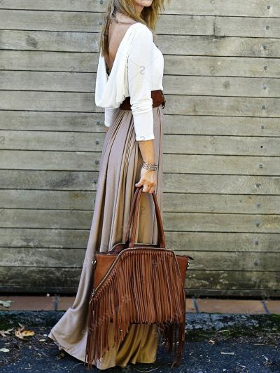 Alluring Long Sleeve Open Back Draped Maxi Dress